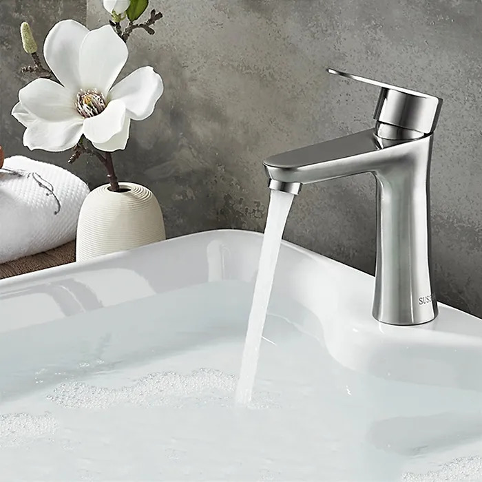 У смесителя есть рычаг, который котролирует напор воды. Монтаж данной модели выполняется на одно отверстие под смеситель.