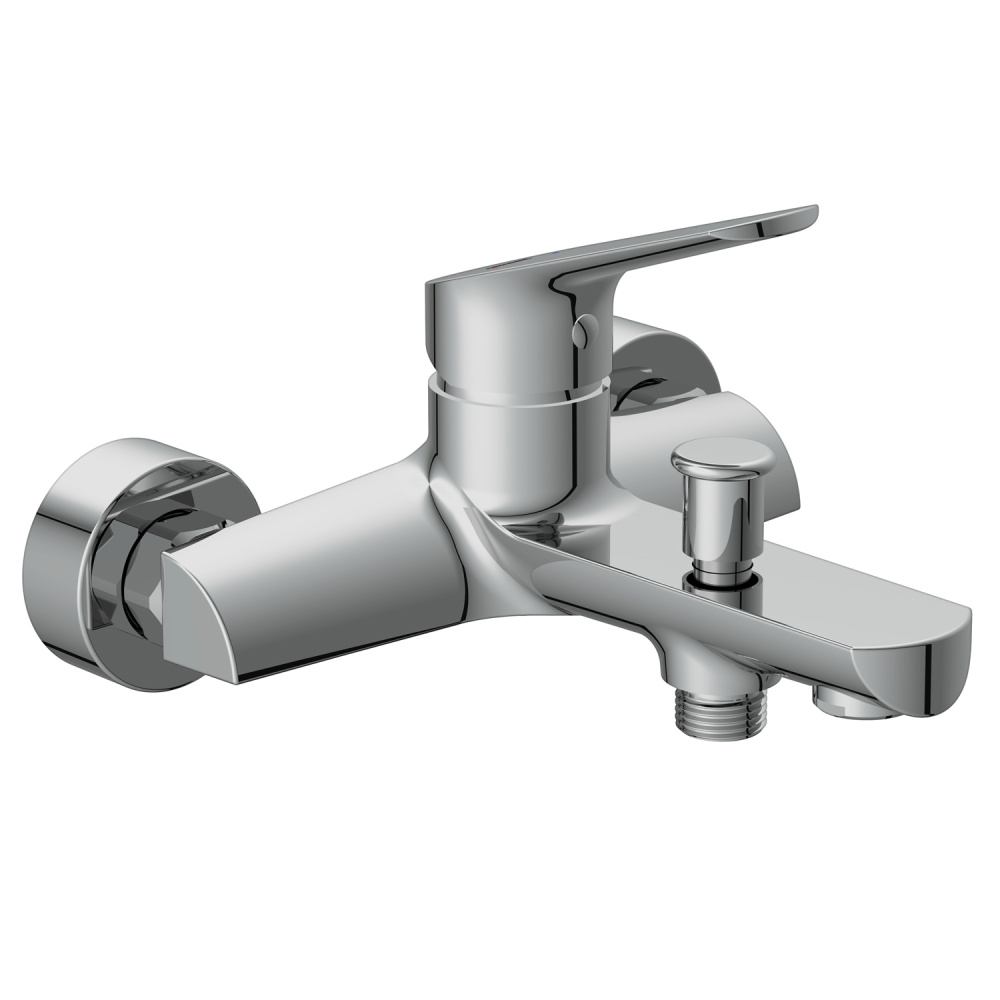 Качественный и стильный однорычажный смеситель для ванны. Керамический картридж, автоматический переключатель ванна/душ, корпус смесителя из сантехнической латуни.