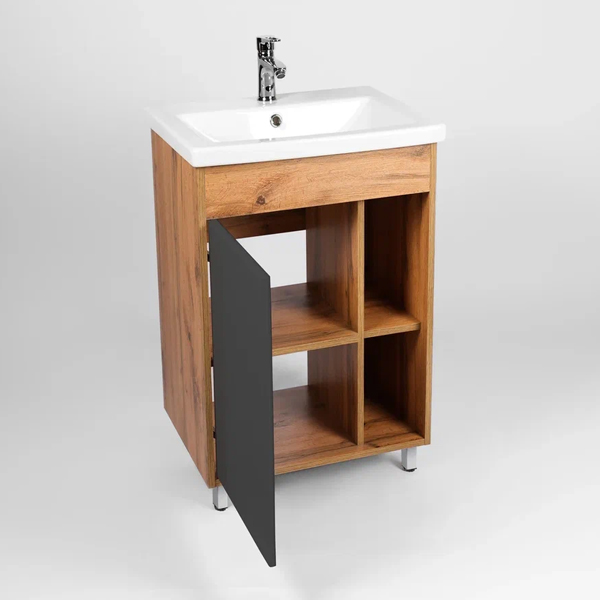 Напольная тумба-умывальник Виант Бостон 60 с одной створкой и полками открытого хранения - укомплектована керамической раковиной Cersanit Como 60.